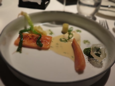 Die drei nacheinander servierten Vorspeisen aus dem Wasser – Saibling, Zander, Langustine – standen den Amuse bouches in nichts nach. Alles perfekt auf den Tellern platziert, da ein Schäumchen, das einen Hauch von Blättchen oder einen Schafsgarben-Blütenstand an Ort hielt, dort ein Tupfen Sauce. Ein Hauptgang, geschossen in den Bündner Wäldern, ein schön dotierter Käsewagen, ein Abschlussbouquet aus Friandises und zahlreichen kleinen Süssigkeiten zum Espresso – so wird Essen auf höchstem Niveau zelebriert, so schafft man eine auf verschiedenen Ebenen stattfindendes Erlebnis.