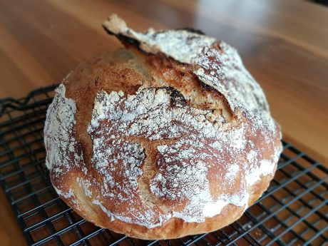 Die Blogs sind voll von ihnen, den „no knead“-Broten. Glaubt man den Schreibern, dann lassen sie sich fast ohne Aufwand von jedem Laien backen. Wieso betreiben Bäcker einen solchen Aufwand mit Vorteig, langem und verschieden schnellem Kneten, Formen, Garen der Teiglinge, wenn man einfach alles in eine Schüssel werfen kann, genügend lang wartet und dann ohne zu formen in einem Gusseisentopf bäckt? Sowas soll funktionieren? Ja, tut es, bestens sogar.