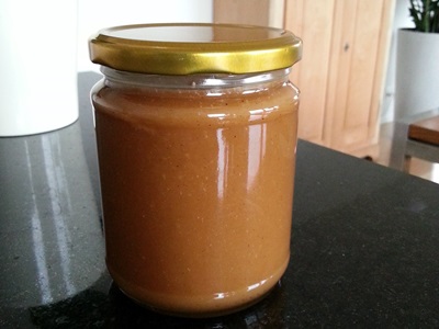 Das Glas war innert kurzer Zeit leer, und der Versuch Ersatz zu besorgen scheiterte kläglich. Die Etikette aber verriet mir, dass die Reproduktion in der heimischen Küche eigentlich recht einfach zu bewerkstelligen sein sollte: 20 % Haselnüsse, 80 % Akazienhonig. Akazienhonig muss es deswegen zwingend sein, weil er dank seiner Milde geschmacklich kaum an Honig erinnert. Nur schon beim Ersatzprodukt aus einem Akzien-/Blütenhoniggemisch, das ich in der Not mal nehmen musste, drang der Honiggeschmack zu stark durch.